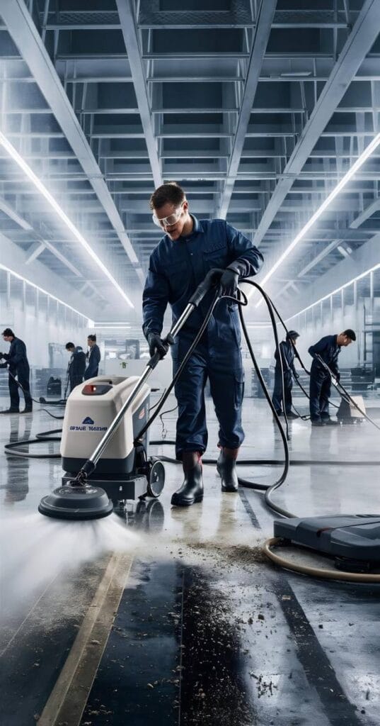 Barrido, fregado y aspirado de todo tipo de suelos, manteniendo apariencia y seguridad.
